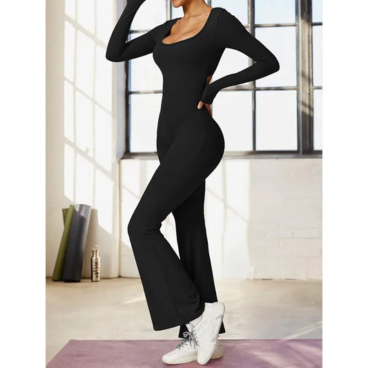 Macacão Giovanna Flare Manga Longa Costas Abertas