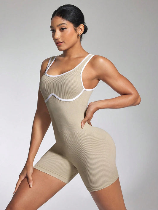 Macaquinho Aurora Canelado Manga Curta Costas Abertas