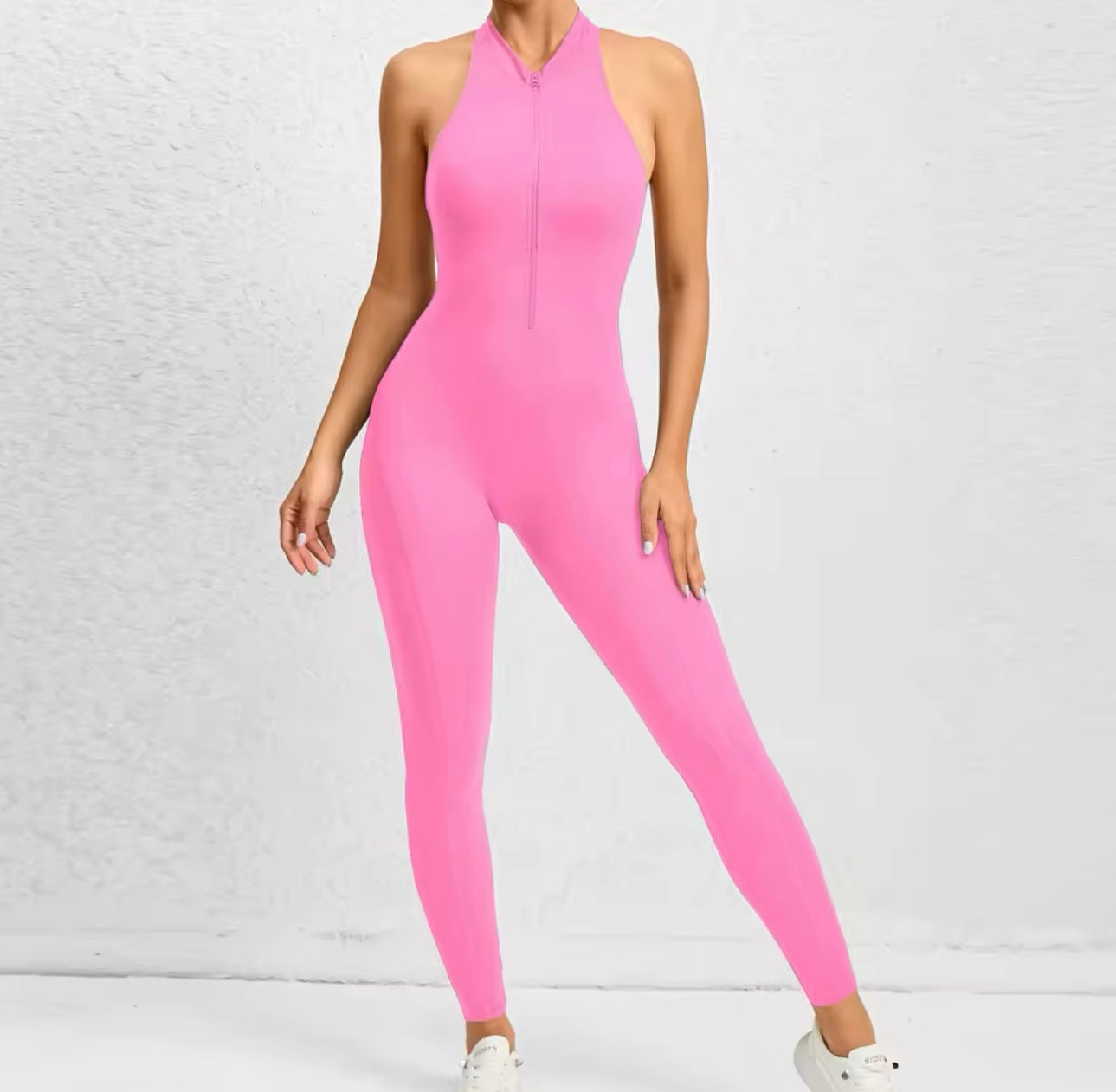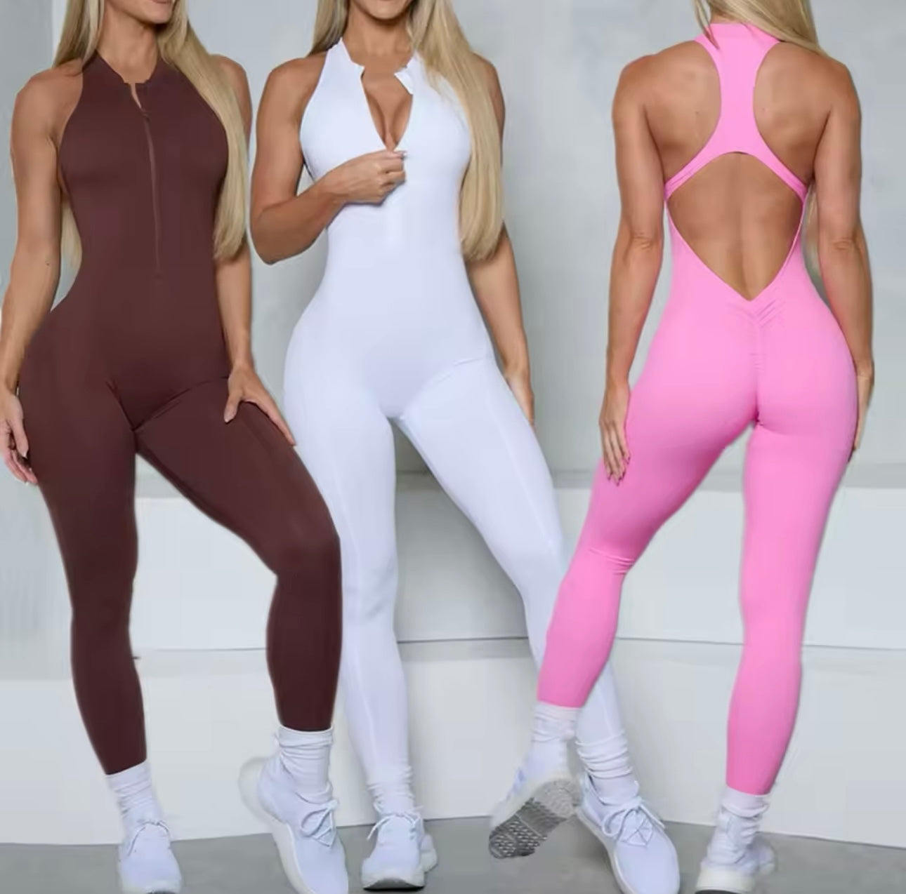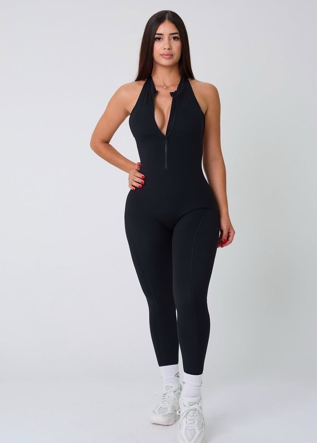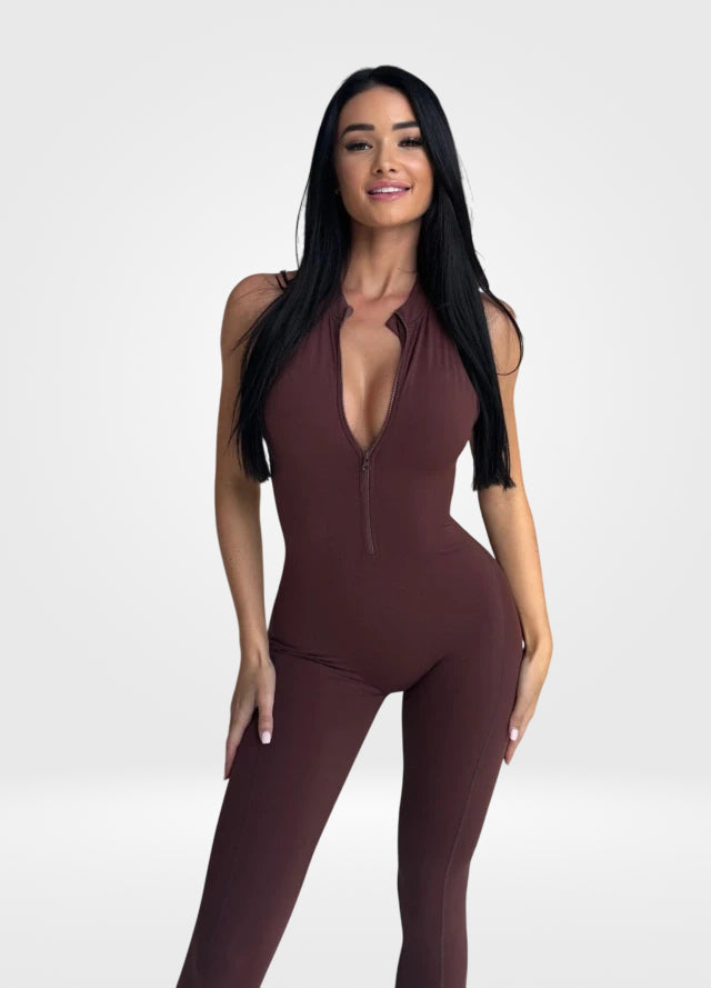 O macacão Costa Nua com zíper frontal é a peça essencial do momento, com design ousado e elegante que valoriza suas curvas. Feito de tecido de alta performance, é elástico, respirável e garante conforto durante todo o dia. O zíper frontal oferece estilo e versatilidade, enquanto a estampa sofisticada elimina transparências, modelando e empinando o bumbum. As costas nuas completam o visual, criando um efeito ainda mais sensual e sofisticado. Ideal para a academia ou looks casuais, é a peça que combina conforto, estilo e atitude em qualquer ocasião.