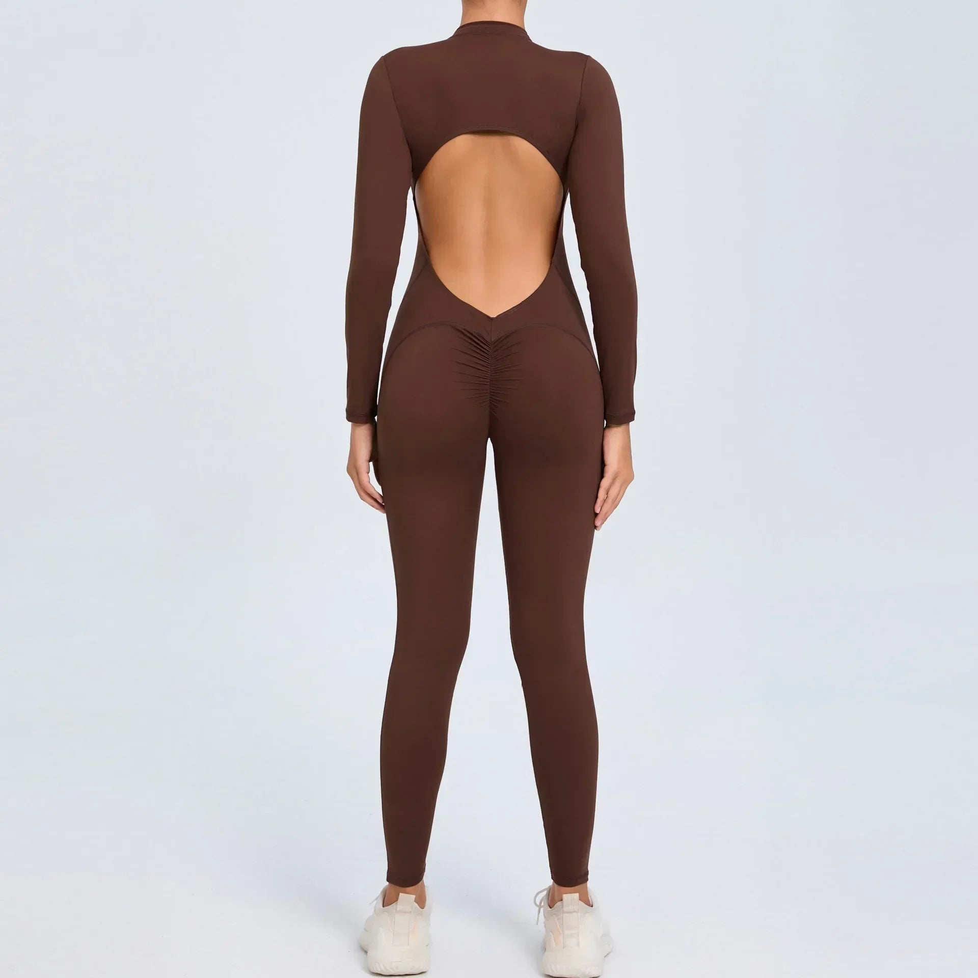 Macacão Bianca Zíper Manga Longa Costas Abertas