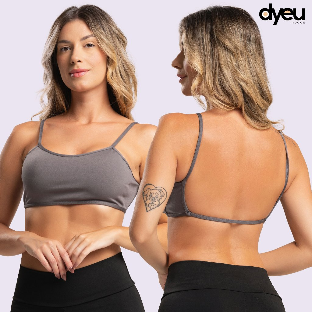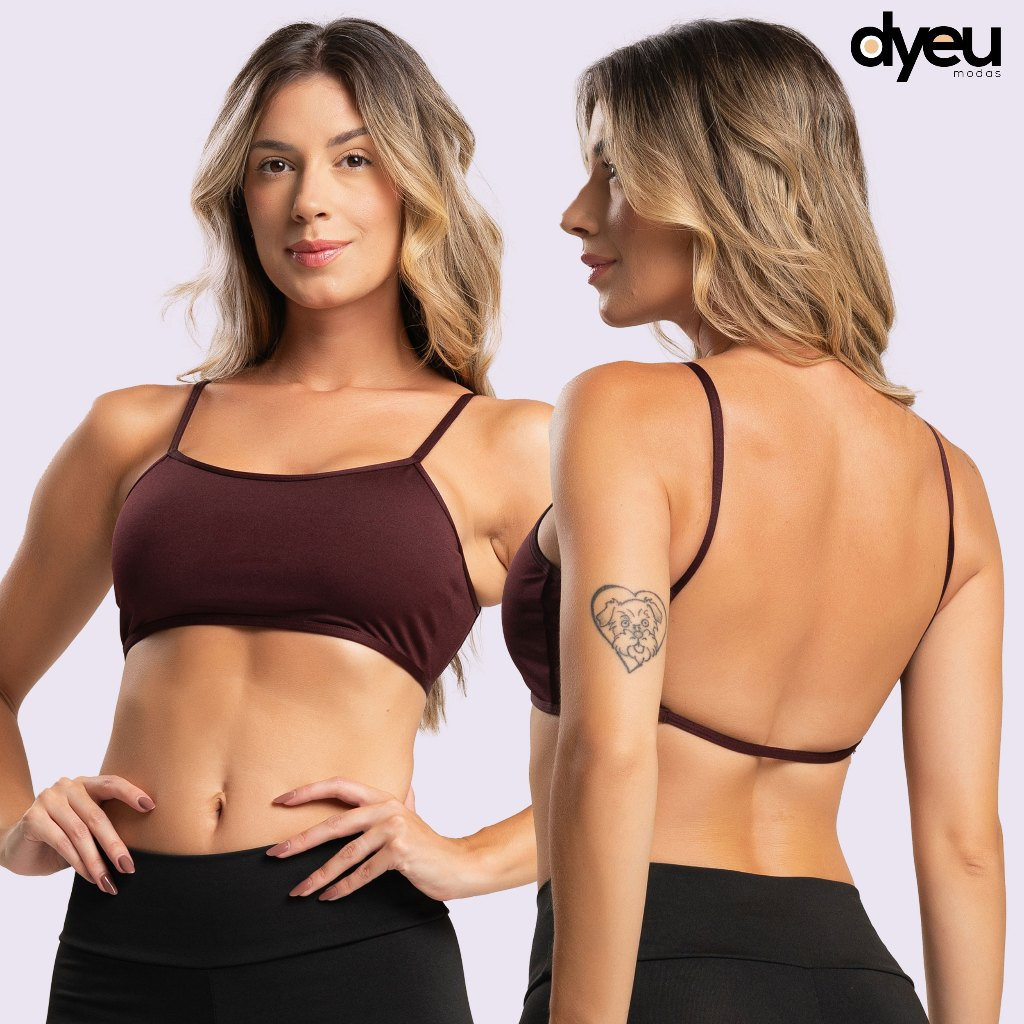 Top Academia Fitness Costa Nua Com Forro e Alça Fina Com Elástico Na Barra Encaixe pra Bojo